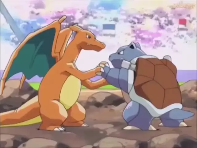 #Pokemon. #anime. #show Charizard Vs Blastoise Ash vemceu o rival Gary