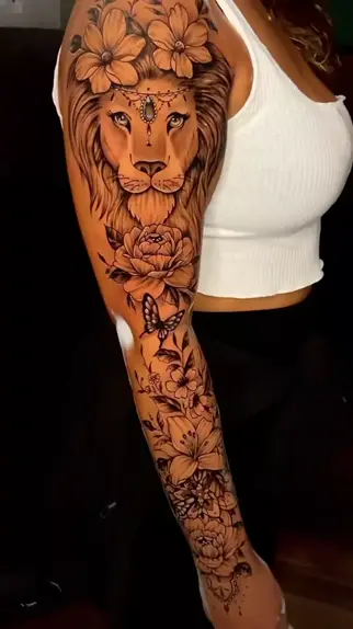 Braço fechado de tatuagens femininas 🦁 | Tatuador: @tiago_dias_tatuadorrj