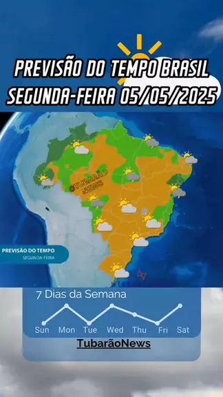 Previsão do tempo no Brasil segunda-feira 05/05/2025, a semana começa ensolarada no Centro-Sul do país. Fonte: Climatempo - 04/05/2025 #noticias #ultimasnoticias #PrevisãoDoTempo #meteorológia #brasil