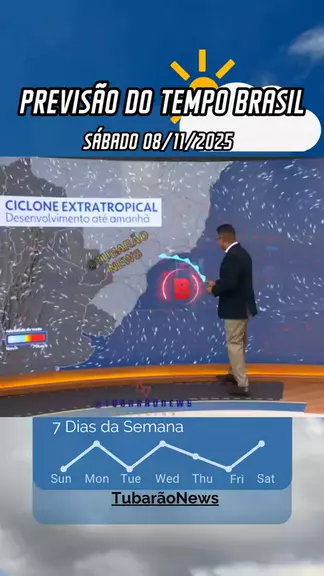 Previsão do tempo sábado 08/11/2025 e alerta para passagem de ciclone extratropical no sul do país. #noticias #ultimasnoticias #PrevisãoDoTempo #cicloneextratropical #brasil