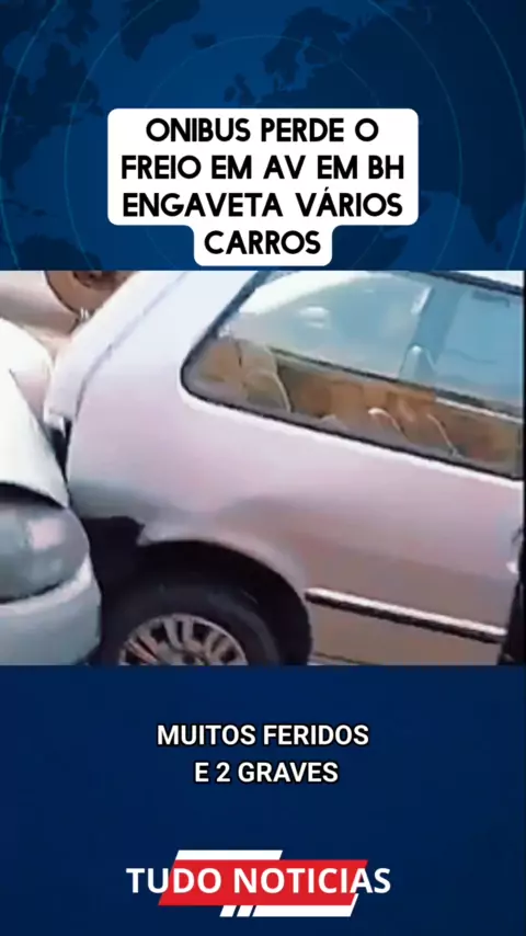 Ônibus perde o freio em avenida de Belo Horizonte e engaveta vários carros. #ultimasnoticias #OnibusPerdeuFreioBH #noticias