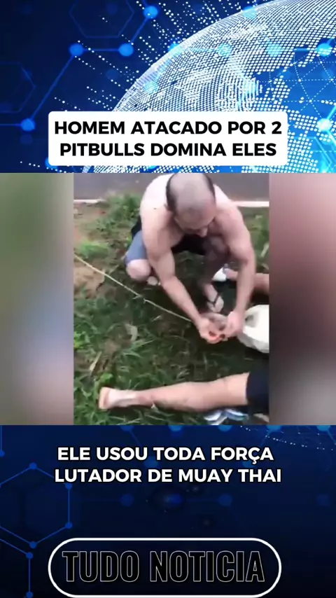 Um homem lutador de muay thai conseguiu dominar 2 pitbulls que o atacaram . Ele teve ferimentos na perna #ultimasnoticias #noticias #News #PitbullAtaque