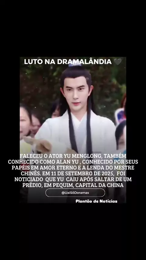 #Repost @uaisodoramas —— Faleceu nesta quinta 11, o ator chinês Yu Menglong, também conhecido como Alan Yu. Yu foi conhecido por seus papéis em Amor Eterno e A Lenda do Mestre Chinês. A agência do ator confirmou que em 11 de setembro de 2025, Yu caiu após saltar de um prédio, em Pequim, capital da China. Lamentamos o ocorrido e desejamos nossas sinceras condolências aos familiares e amigos. Que ele descanse em paz😞🖤 #uaisodoramas #lutonadramalandia #dramalandia #cdramas @Uai Sô Doramas