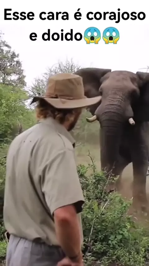 homem fica frente a frente com Elefante. #elefante #coragem #bichosselvagens #wildanimal