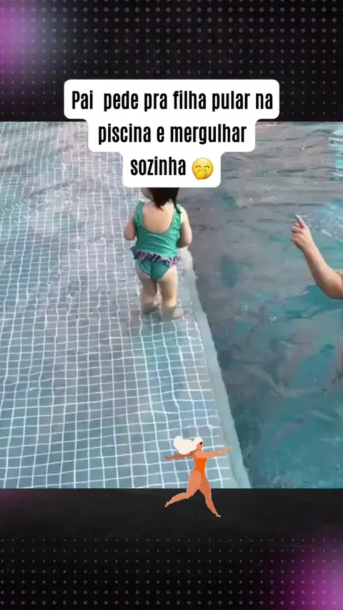 Essa vai ser atleta de natação desse tamanho nadando assim ..parece um peixinho #menina #pular #piscina