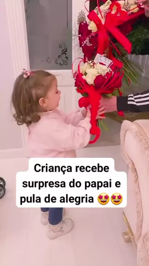 Pai da um buquê de flores para a filha e ela pula de alegria #viral # #bebesfofos #flores #babykids # #criança #