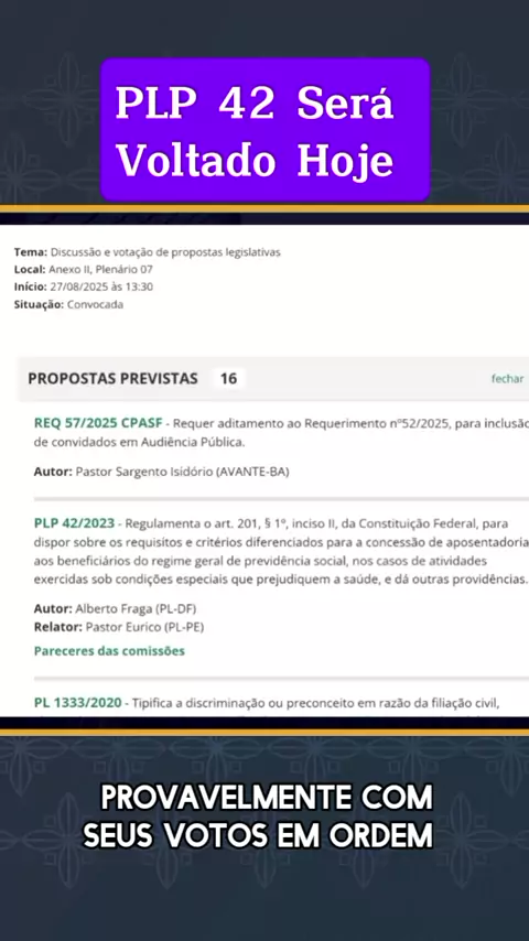 PLP 42 SERÁ VOTADO HOJE #viraliza #maisviews #Noticia #benefícios #familiatoppg