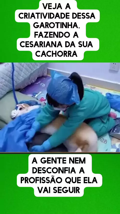 Veja a criatividade dessa garotinha, fazendo a cesariana da sua cachorra