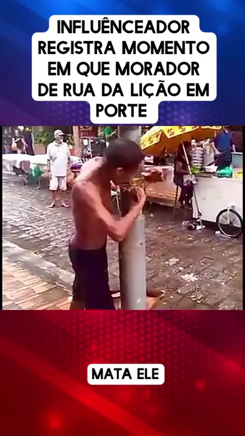 influênceador registra momento em que morador de rua da lição em porte #fofoca #entretenimento
