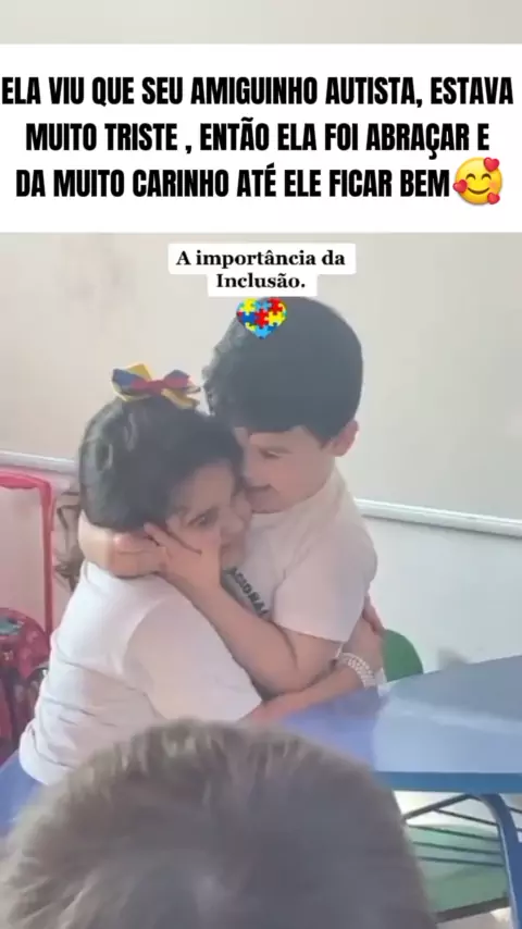 ela viu que seu amiguinho autista tava muito triste então ela foi la da abraço e muito carinho até ele ficar bem🥰#crianca #babys #kids #viral #fyp