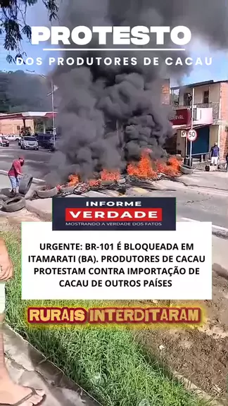 REPORTAGEM: URGENTE: BR-101 É BLOQUEADA EM ITAMARATI (BA). PRODUTORES DE CACAU PROTESTAM CONTRA IMPORTAÇÃO DE CACAU DE OUTROS PAÍSES
