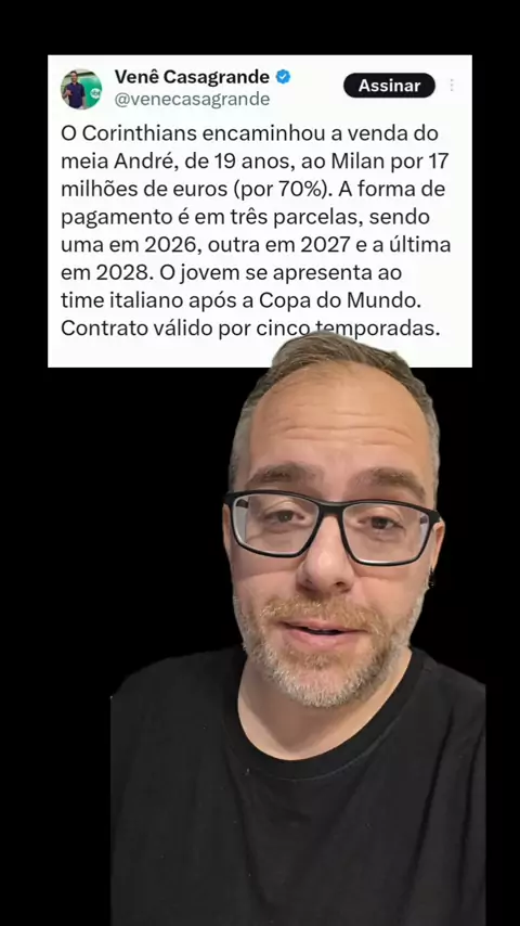 Duas situações podem fazer a venda de André para o Milan ficar ainda pior do que já sabemos... 😱 #Corinthians #papocomVessoni #AcMilan