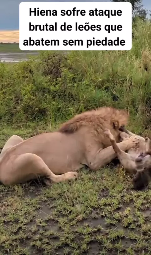 Hiena sofre ataque brutal de leões que abatem sem piedade#mundoanimal #animalselvagem #vidaselvagem