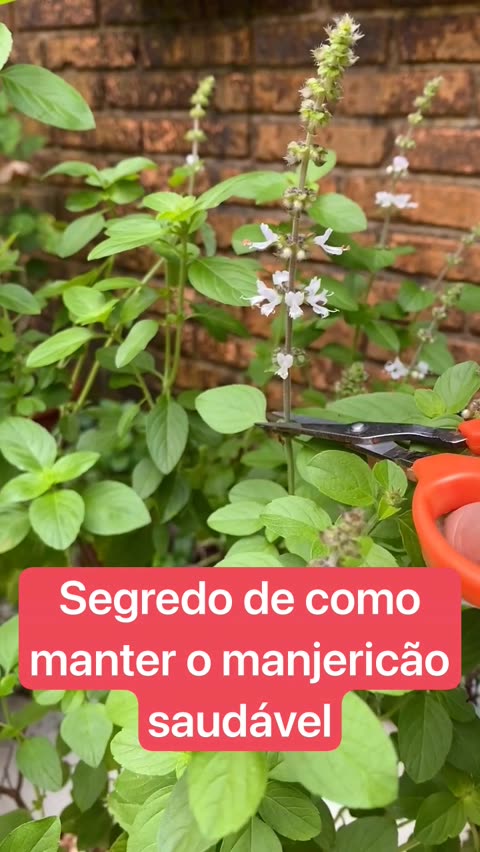 O manjericão é uma erva aromática que aprecia sol, terra estercada e regas regulares! Porém para manter ele sempre saudável é preciso fazer a poda das inflorescências! #manjericao #horta #jardinagem #vidanojardim #comocuidar