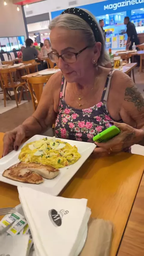Vovó Maria acordou está boladona hoje . #almoco #familia