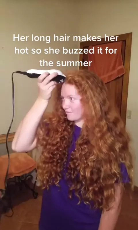 Cabelo muito longo raspado fora ginger girl # headshavewomen # buzzcutgirl # # barberheadshave # girlhaircut # buzzcut