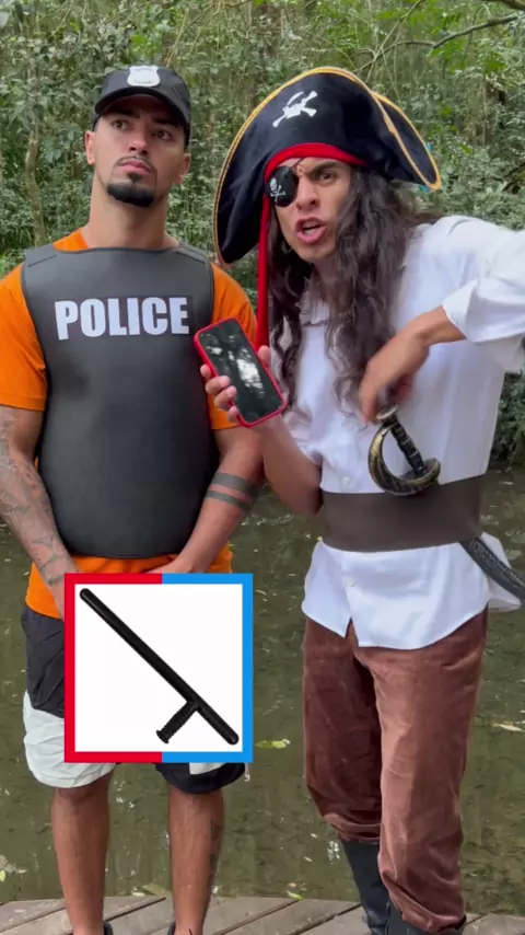 Será que o policial quer virar um pirata? 🏴☠️🤔
