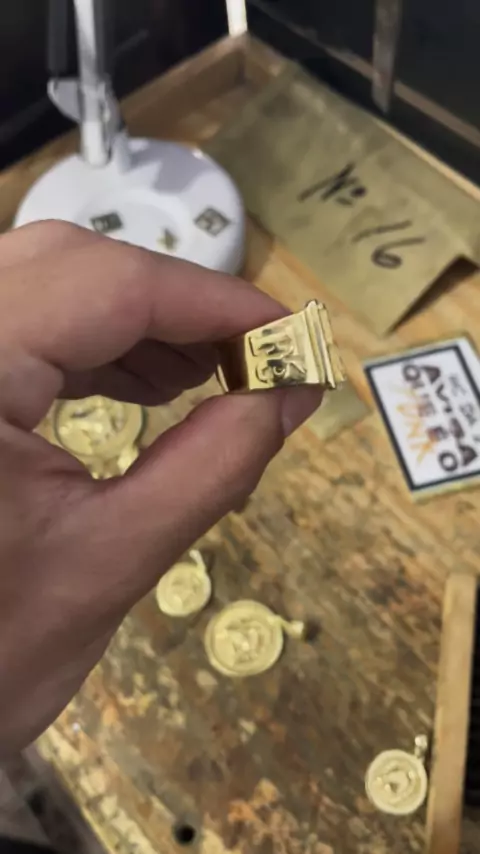 Anel personalizado com letra encima, na lateral Fé e Malote R$249,00 *Cartão em até 12x *Avista com até 10% de desconto *Feito de moeda antiga *Garantia eterna *Frete grátis *Nossas peças são feitas de moeda antiga, material que tem uma cor extremamente parecida com o ouro. *As peças de moeda antiga recebem garantia eterna referente ao dourado do material. *A limpeza da peça de moeda antiga pode ser feita com álcool em gel ou detergente. Para um melhor resultado é indicado