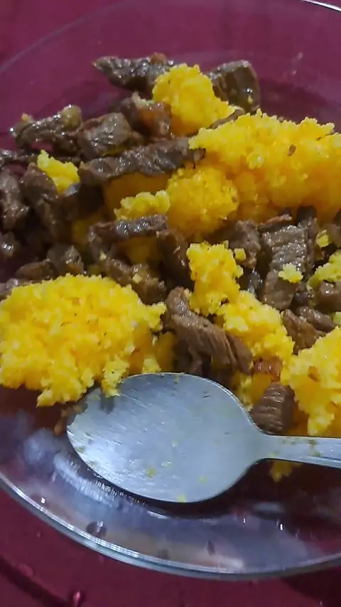 Minha jantinha cuscuz de milharina com carne frita.
