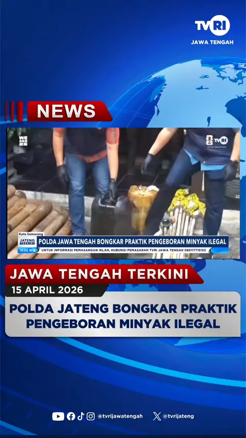 Polda Jawa Tengah Bongkar Praktik Pengeboran Minyak Ilegal #jatengterkini Rabu 15 April 2026 Direktorat Reserse Kriminal khusus Polda Jawa Tengah mengungkap kasus terkait praktik pengeboran minyak ilegal di Kabupaten Blora dan Rembang, polisi mengamankan tiga orang tersangka atas aktivitas ilegal tersebut. #Kabupatenblora #pengeboranminyakilegal #beritatvrijateng #tvrijawatengah