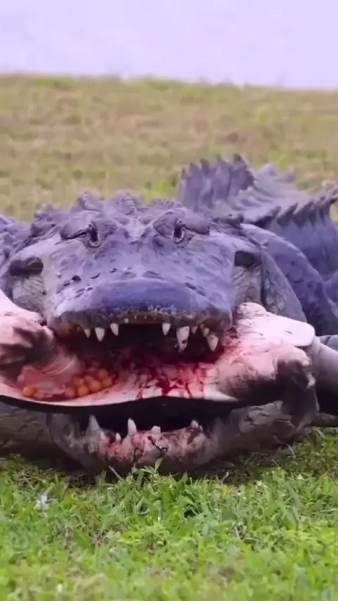 aligator mastigando uma tartaruga com ovos More