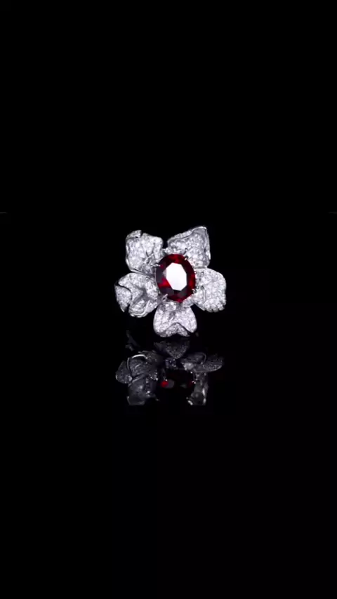 Oval Shape Lab Created Ruby Flower Rings Trendy Style Jewelry