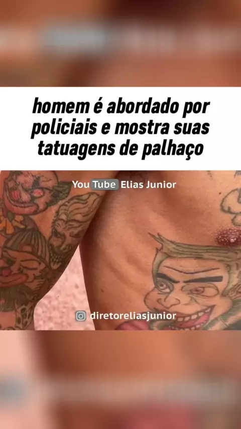 Homem é abordado por policiais e mostra suas tatuagens de palhaço #Noticia #news #noticia2024 #violence #viral