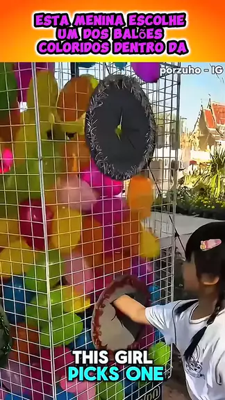 esta menina escolhe um dos balões coloridos dentro da