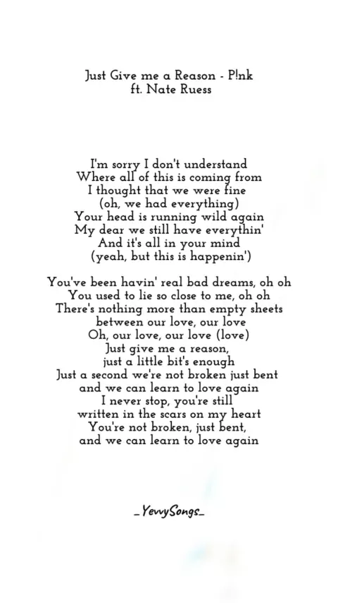 Just Give me a Reason - P!nk ft. Nate Ruess #justgivemeareson #PINK #nateruess #sadsongs #heartbreak