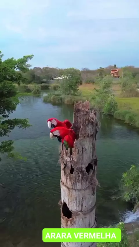 ARARA VERMELHA NO NINHO #aves #natureza #animais
