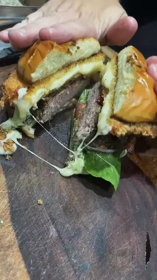• Hambúrguer de Cupim e Miolo de Acém com Mussarela Empanada 🍔🧀 Gostou desse conteúdo? Siga e acompanhe! #receitas #lanche #hamburguerartesanal #hamburguercaseiro #blend