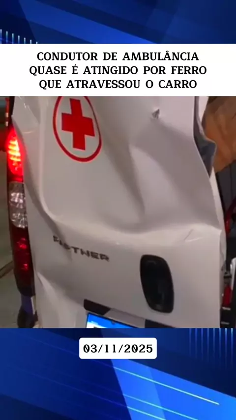 CONDUTOR DE AMBULÂNCIA QUASE É ATINGIDO POR FERRO QUE ATRAVESSOU O CARRO #noticias# #entretenimento# #ultimasnoticas# #News# #ambulancia#