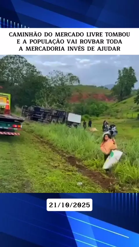 CAMINHÃO DO MERCADO LIVRE TOMBOU E A POPULAÇÃO VAI ROVBAR TODA A MERCADORIA INVÉS DE AJUDAR #noticias# #entretenimento# #ultimasnoticas# #News# #acidente#