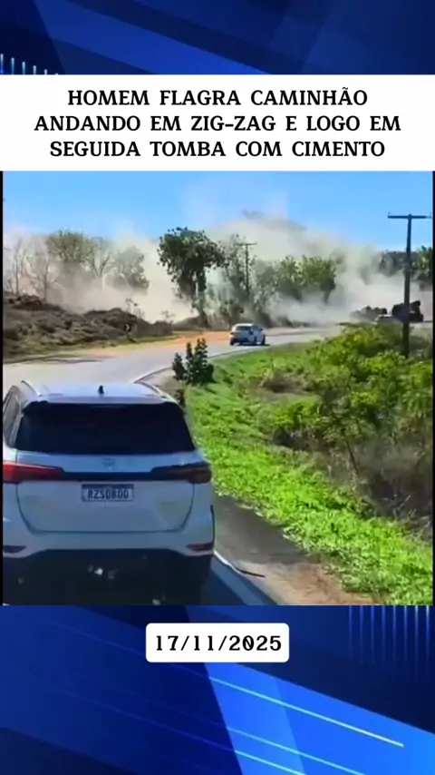 HOMEM FLAGRA CAMINHÃO ANDANDO EM ZIG ZAG E LOGO EM SEGUIDA TOMBA COM CIMENTO #noticias# #entretenimento# #ultimasnoticas# #News# #caminhao#