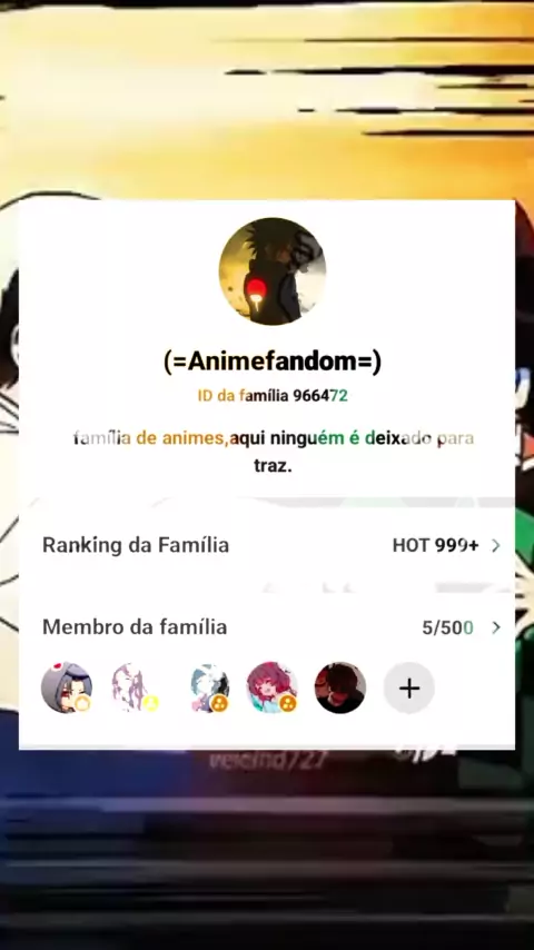 entre para nossa família de animes :> se quiser entrar fala cmg ou com @⏤͟͟͞͞⃢Y̶u̶m̶i̶ˢᵐᵃッ(O150000967987137) e @⏤͟͟͞͞⃢A̶k̶i̶r̶a̶ˢᵐᵃッ(O150000150399987)