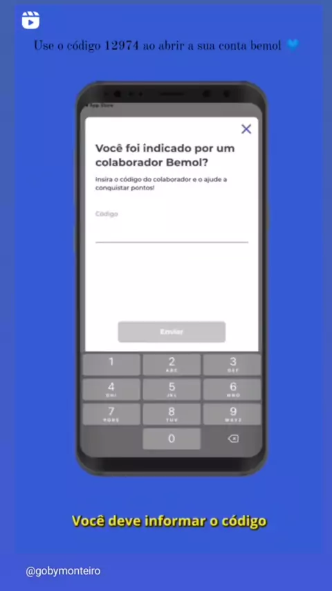use meu código 12974 ao abrir sua conta bemol 💙 #bemol #contabemol #azul #feed #manaus
