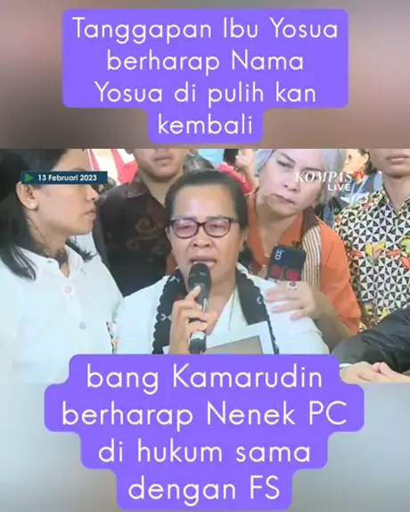Ibu Yosua meminta agar nama baik Yosua di pulihkan & kamarudin berharap Pc di hukum M4t1