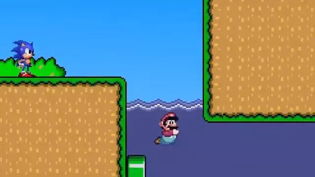Sonic e Mario juntos passando faze