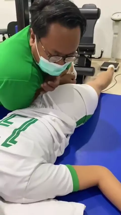 week 4, after op ACL + Meniscus. (kaki kanan) Kaki kanan masih belum boleh napak, sakitnya fisio ada di fase 1 ini😭🥺.