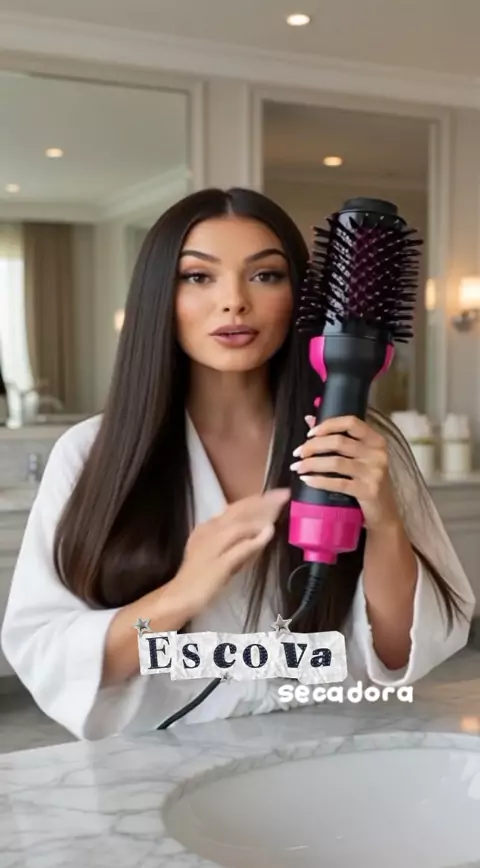 Essa escova secadora mudou minha rotina 😍✨ seca, alisa e modela ao mesmo tempo! Cabelo alinhado em minutos 💁♀️💖 Link nos comentários 🔗 #EscovaSecadora #CabeloPerfeito #AchadinhosShopee #BelezaPratica #KwaiBrasil