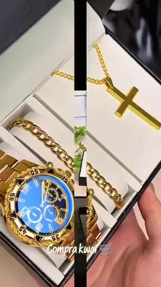 Relógio Dourado Masculino Com Puseira e Cordão em Aço Ótima Qualidade #achadinhos #promoçao