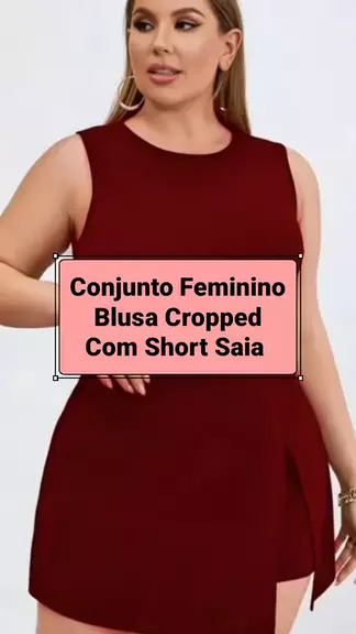 Conjunto Feminino Blusa Cropped Com Short Saia Plus Size - Conjuntinho Plus Curve #conjuntinho #modafemenina #conjuntofemenino