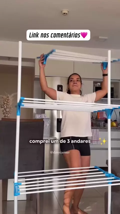 O varal de três andares solução para quem mora em apto pequeno ! Link nos comentários 💕 #organization #Organização #varalderoupa #varal #Lavanderia