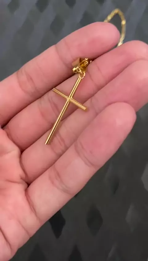 Colar masculino com pingente de cruz palito banhado a ouro Aço inoxidável 18k cordão em estilo