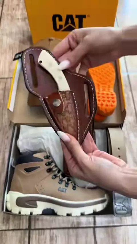 Kit Bota Caterpillar Adventure Casual Coturno Trilha Americano Mais Cinto Carteira e Chinelo #bota #obra #Trilha #trabalha #caminhada
