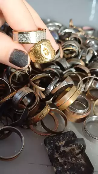 Aneis desenterrados com o detector de metais.