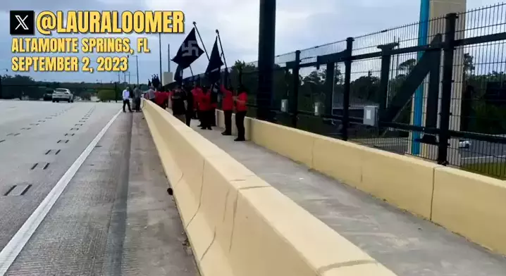 🇺🇲 Altamonte Springs, Flórida, onde um grupo de Na... agitando bandeiras com a suástica e gritando “heil Hitler” estava agitando uma bandeira e uma marcha ao lado de 1-4 West .