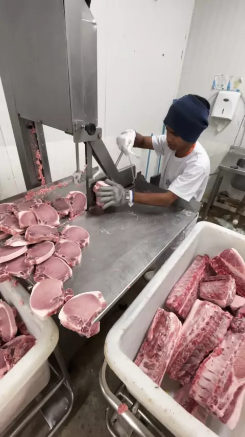 O mini açougueiro cortando carré😅 #meme #video #carne #Açougue