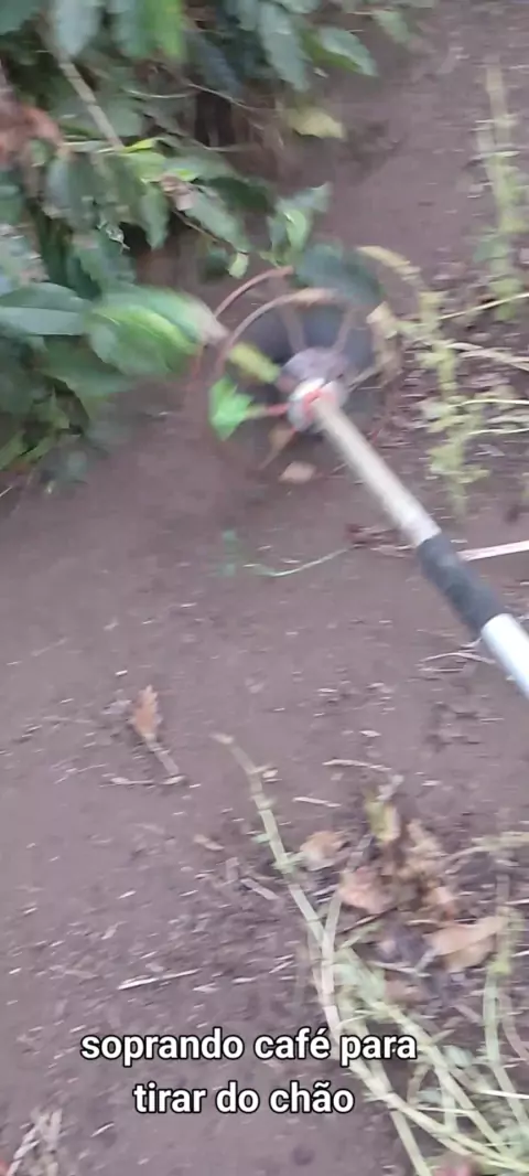trabalho com soprador para tirar café do chão