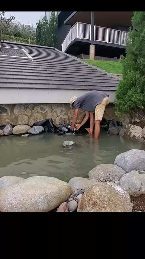 air mengalir di atas genteng #sungaibuatan #kolamgeomembran #kolamterpal